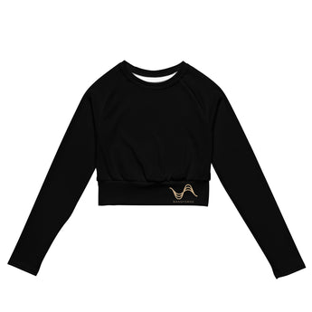 This long-sleeve crop top is made of recycled polyester and elastane, making it an eco-friendly choice for swimming, sports, or athleisure outfits. The crop top has a tear-away care label and a wide, double-layered waistline band for a comfortable fit.
